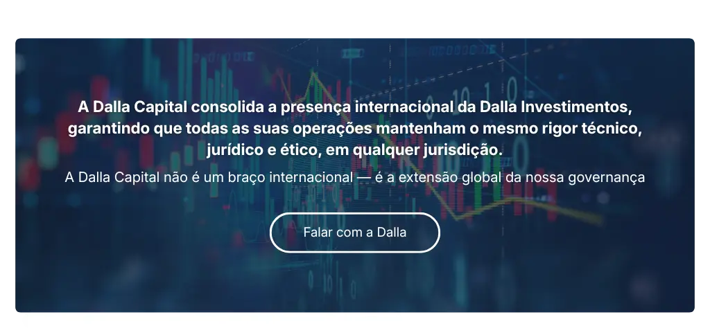 A Dalla Capital UK representa o braço internacional da holding, responsável por integrar funding, governança e relacionamento com o mercado global de capitais.